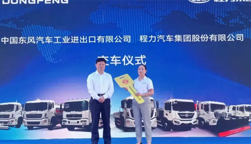 5月27日上午,陽(yáng)光明媚晴空萬(wàn)里,在風(fēng)景如畫花園式的程力新廠底盤大樓廣場(chǎng)上,程力汽車集團(tuán)與中國(guó)東風(fēng)汽車工業(yè)進(jìn)出口有限公司,聯(lián)袂舉行了一場(chǎng)隆重而又別開(kāi)生面的“深耕專用車,攜手共出海”商用車新產(chǎn)品大型推薦會(huì)。